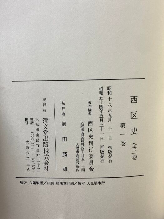 タイトル:西区史 全3巻 セット 揃い 昭和54年 清文堂出版株式会社