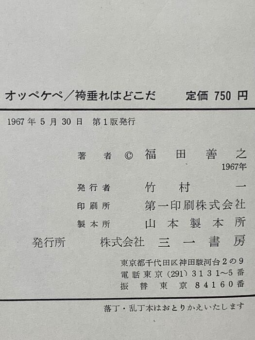タイトル:オッペケペ 袴垂れはどこだ 福田善之第二作品集 三一書房 福田善之