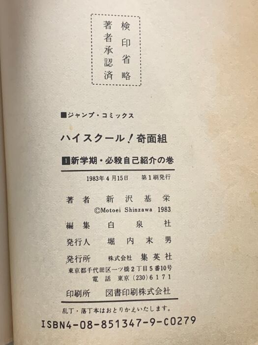 タイトル:ハイスクール奇面組 6冊 セット 不揃い 全初版 集英社