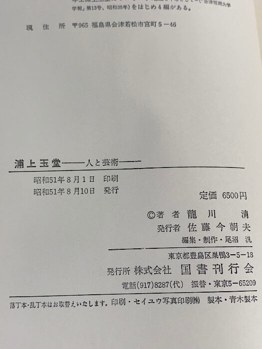 浦上玉堂 人と芸術 龍川 清 国書刊行会