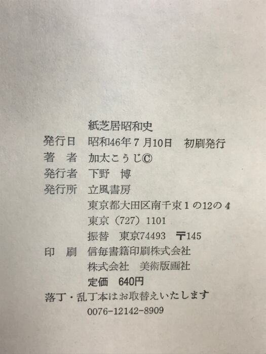 タイトル:紙芝居昭和史 立風書房 加太こうじ