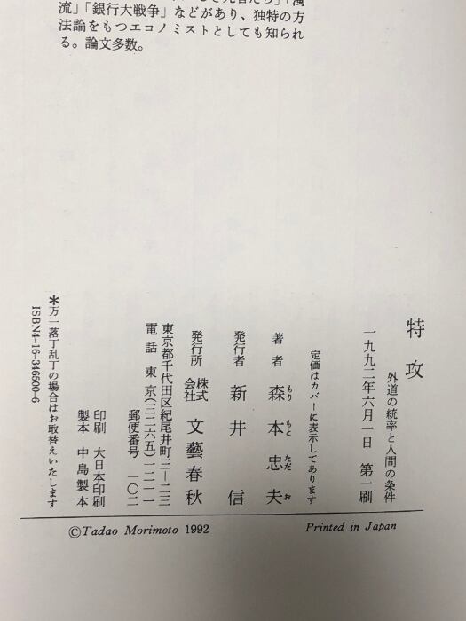 特攻: 外道の統率と人間の条件 文藝春秋 森本 忠夫