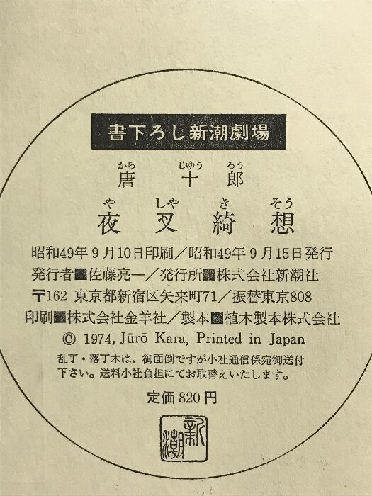 夜叉綺想 (書下ろし新潮劇場) 新潮社 唐十郎