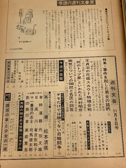 3 週刊文春 11月8日号 昭和40年 ワイド企画 病気についての100問と名医の回答 文藝春秋社