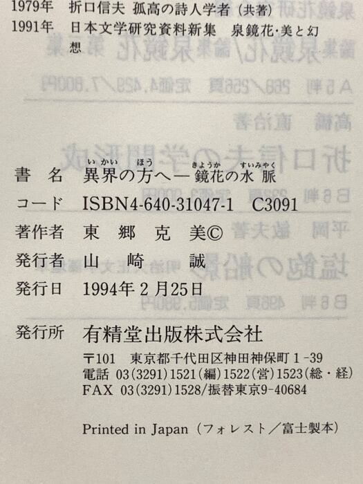 タイトル:異界の方へ: 鏡花の水脈 有精堂出版 東郷 克美