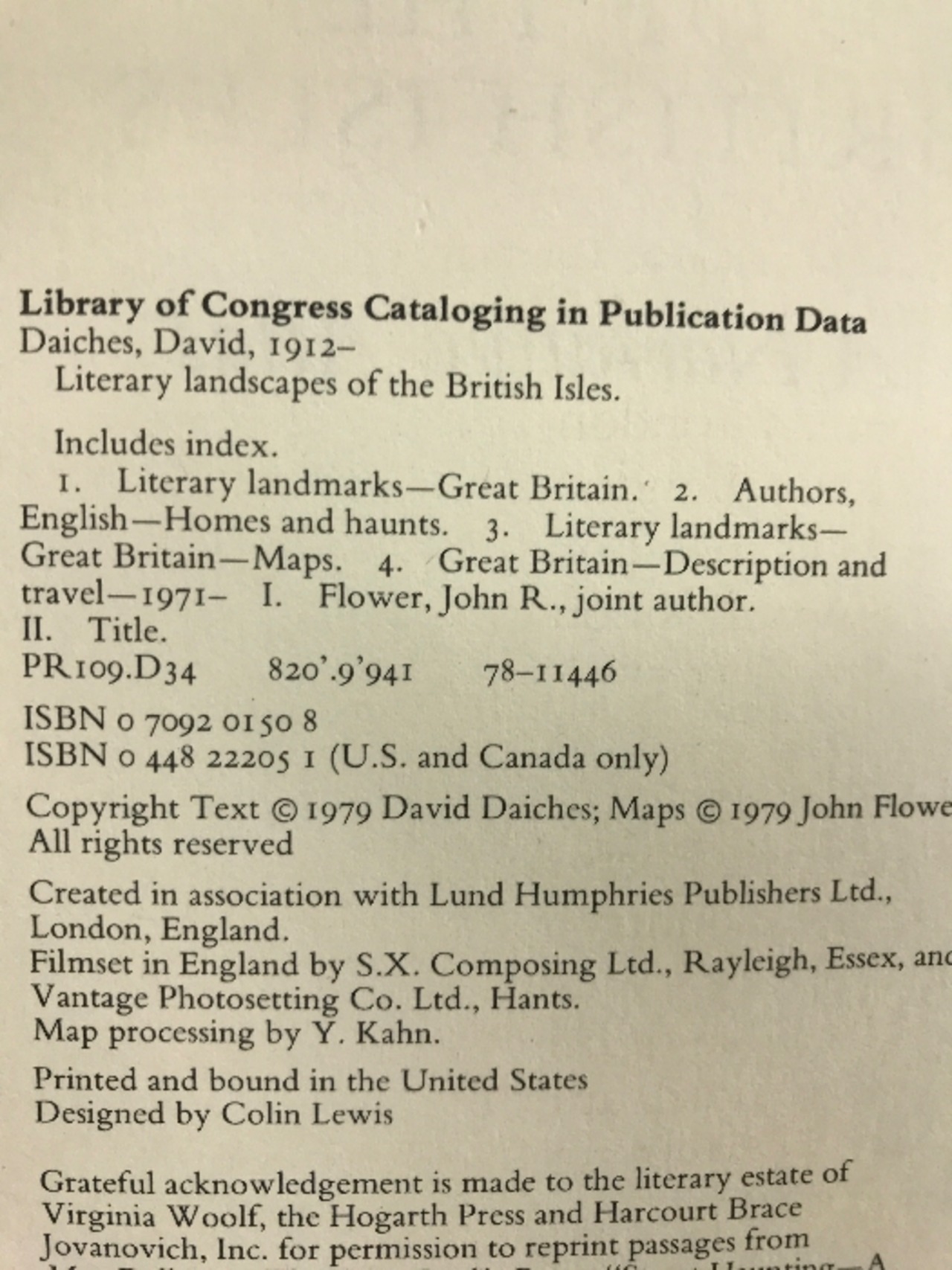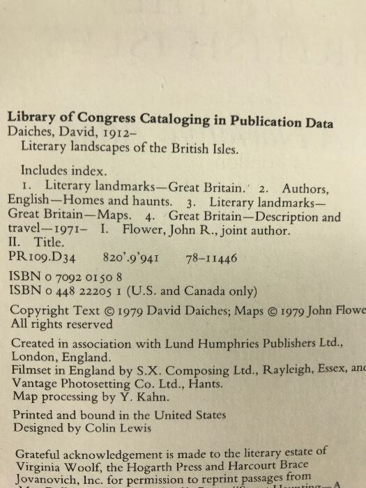 Literary Landscapes of the British Isles: A Narrative Atlas Imprint unknown DavidDaiches