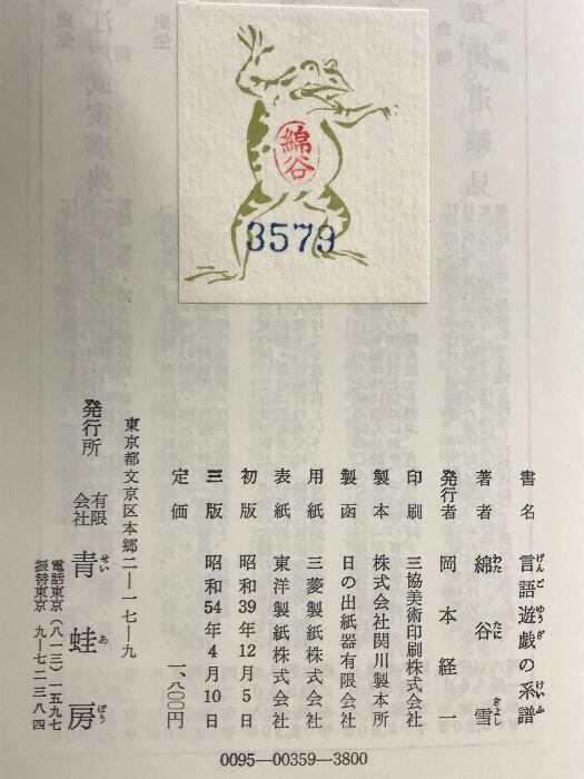 言語遊戯の系譜 青蛙房 綿谷雪:著