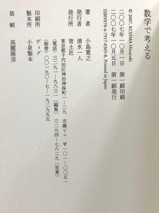 タイトル:数学で考える 青土社 小島 寛之