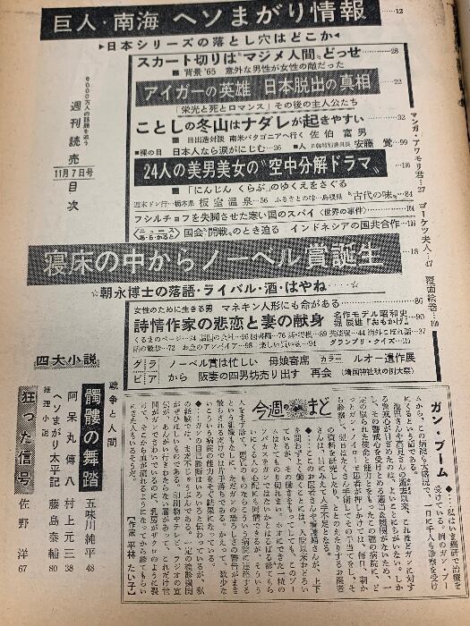 8 週刊読売 11月7日号 昭和40年 巨人・南海 ヘソまがり情報 朝永博士・ノーベル賞から落語まで 読売新聞社
