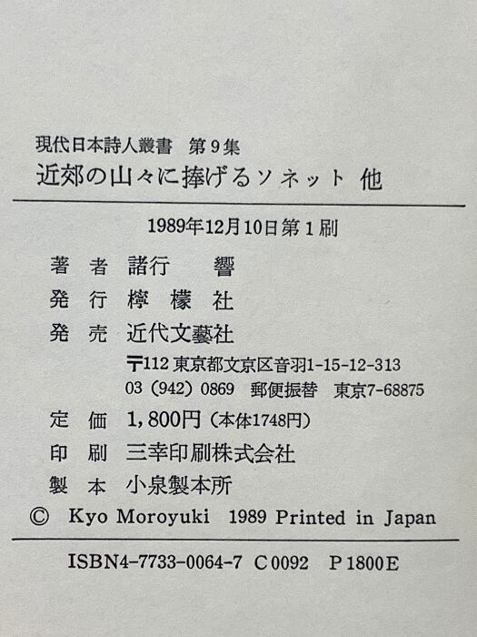 近郊の山々に捧げるソネット: 他 諸行響詩集 (現代日本詩人叢書 第 9集) 近代文藝社 諸行 響