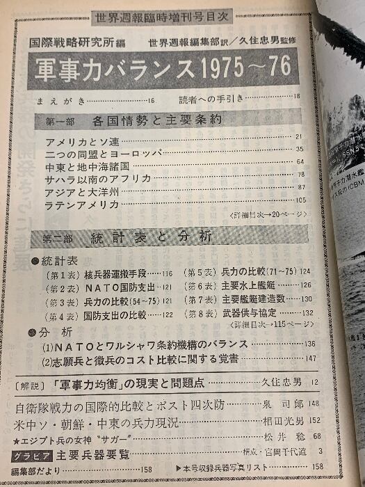 世界週報・臨時増刊 軍事バランス 1975~1976 解説 ・軍事力均衡の現実と問題点 日本の防衛力の国際比較 他 時事通信社