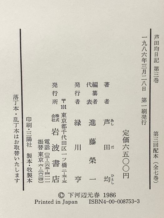 タイトル:芦田均日記〈第3巻〉昭電事件と講和問題―空隙の日々 岩波書店 芦田 均