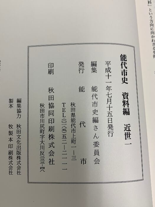 タイトル:能代市史 資料編 近世一 平成11年 能代市 (秋田県)