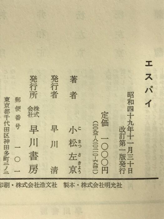 タイトル:エスパイ (日本SFノヴェルズ) 早川書房 小松左京