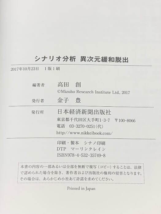 タイトル:シナリオ分析-異次元緩和脱出: 出口戦略のシミュレーション 日経BPマーケティング(日本経済新聞出版 高田 創