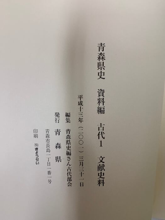タイトル:青森県史 資料編 古代1 文献史料 平成13年 青森県 (青森県)