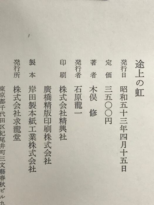 タイトル:途上の虹 求龍堂 木俣修 昭和53年