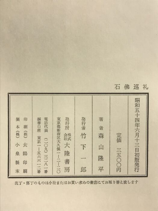 タイトル:【図録】石佛巡礼 大陸書房 写真文:森山隆平 昭和54年