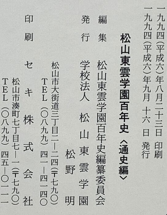 タイトル:松山東雲学園百年史 通史編 (愛媛県)