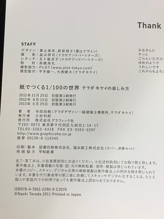 タイトル:紙でつくる1/100の世界 テラダモケイの楽しみ方 グラフィック社 寺田 尚樹