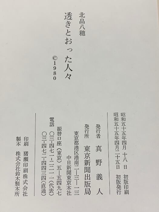 タイトル:透きとおった人々 東京新聞出版部 北畠八穂