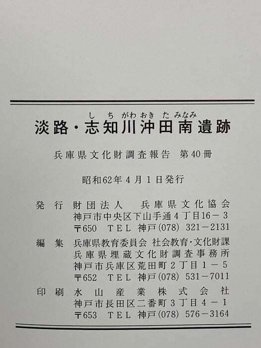タイトル:淡路・志知川沖田南遺跡 財団法人 兵庫県文化協会 (兵庫県)