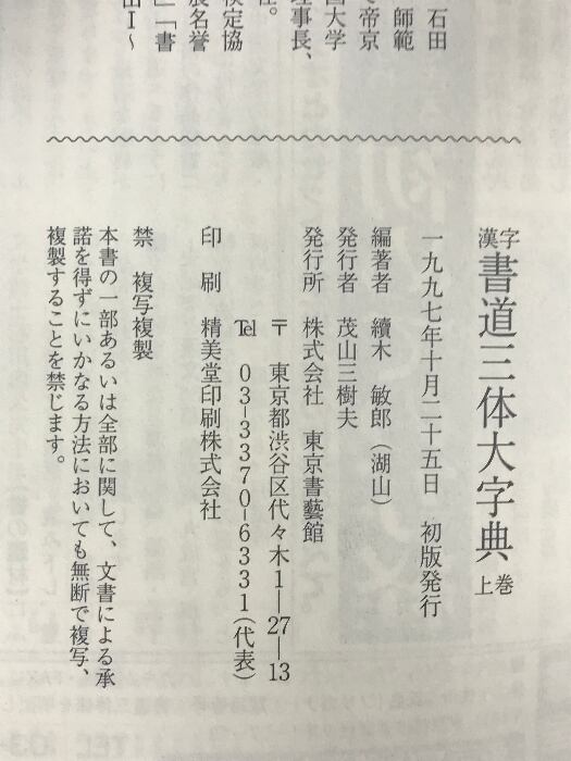 タイトル:漢字書道三体大字典(上・下巻/全2冊セット)東京書芸館 續気敏郎(湖山)1997年