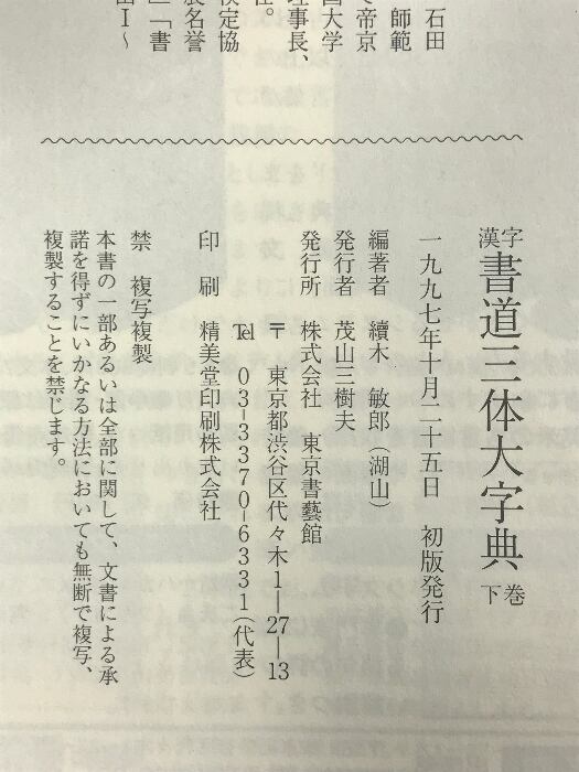 漢字書道三体大字典(上・下巻/全2冊セット)東京書芸館 續気敏郎(湖山)1997年