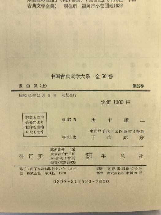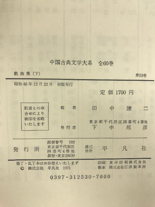 戯曲集 52-53(上・下巻/全2冊セット)平凡社 編者:田中健二 昭和45年-46年
