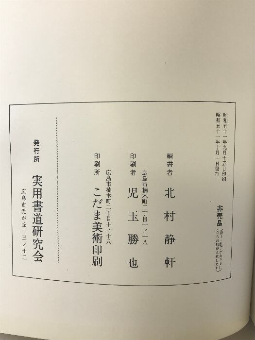 常用熟語 行書千字文 実用書道研究会 編:北村静軒 昭和51年 【非売品】