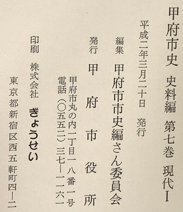 甲府市史 史料編 第七巻 現代1 (山梨県)