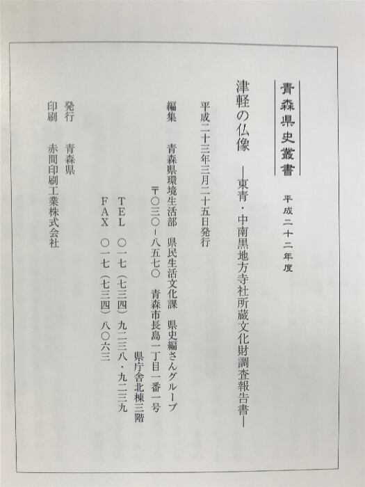 タイトル:【図録】青森県史叢書 「津軽の仏像」東青・中南黒地方寺社所蔵 文化財調査報告書 発行:青森県 平成23年