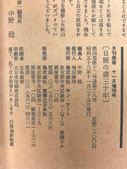 【図録】月刊美術(11月増刊号)実業之日本社 日展の書三十年 安藤聖空 ・村上三島・青山杉雨 昭和53年11月25日