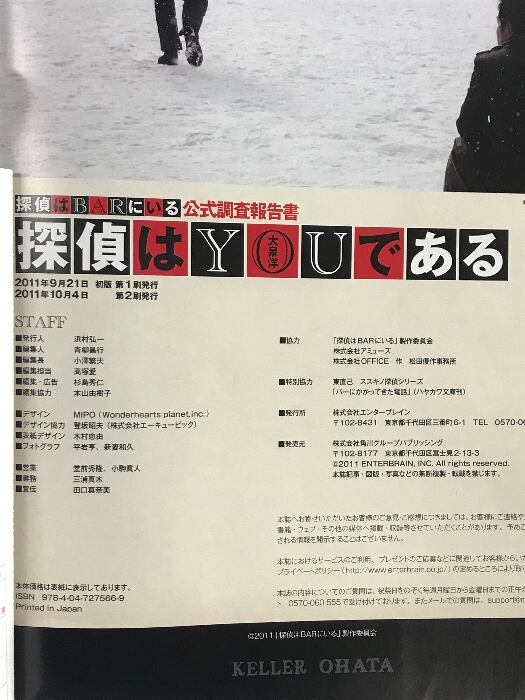 タイトル:探偵はYOUである(探偵はBARにいる公式調査報告書)エンターブレイン 大泉洋・松田龍平・小雪・西田敏行 2011年9月21日発行