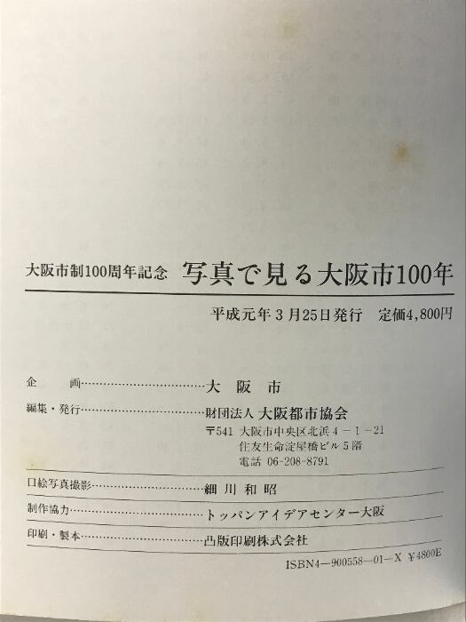 タイトル:写真で見る大阪市100年(大阪市制100周年記念) 発行:大阪市 平成元年